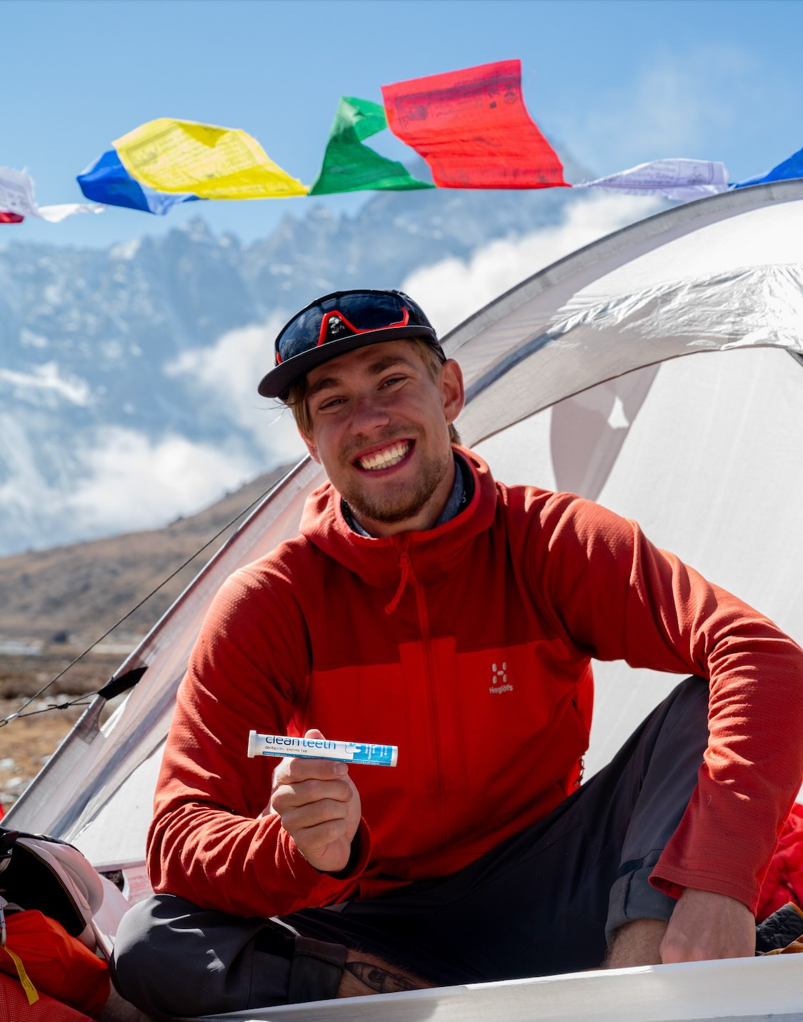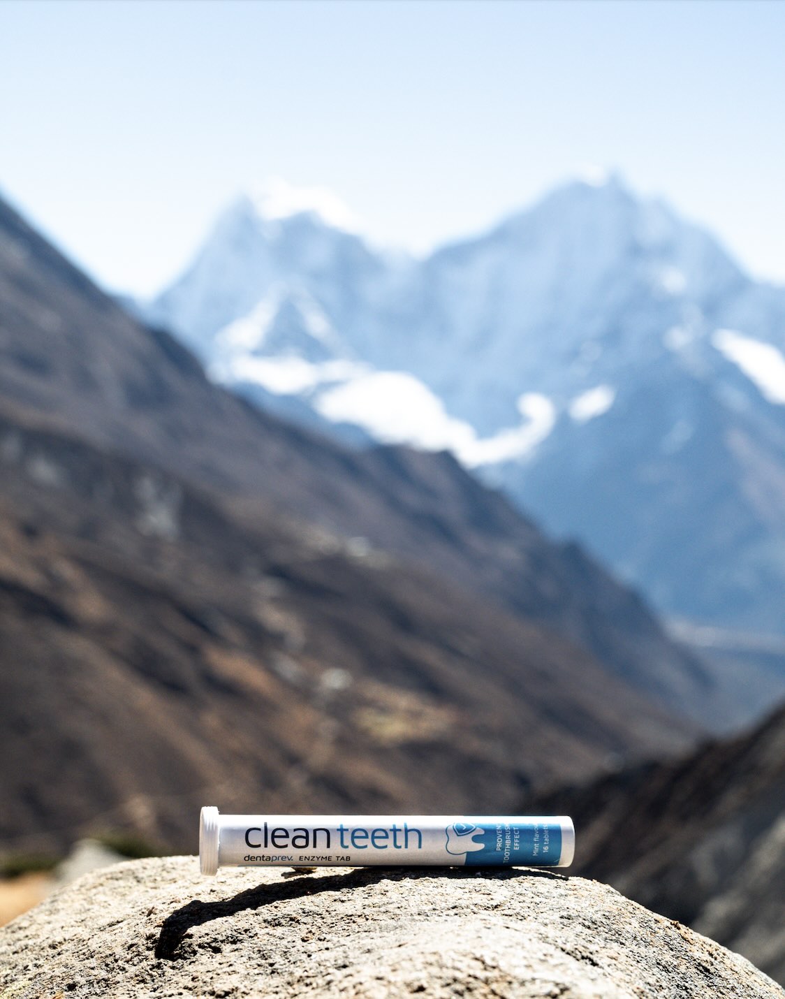 “Up here, everything gets tougher; your body is working hard to pump oxygen, and the slightest effort feels doubly or even triply exhausting, especially something as simple as brushing your teeth, so our Clean Teeth Enzyme Tabs really came in handy!”